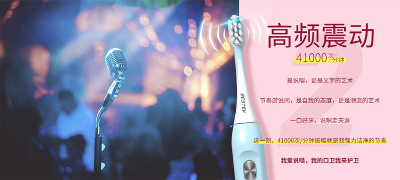 百事泰電動牙刷采用了創新高頻震動技術,震動達 41000 次 / 分鐘。根據其震動產生的流動潔力進行清潔,使用時只需貼近牙齒緩慢移動,從而能避免用力不均和用力過度造成的牙齦損傷,同時它能夠多倍有效的去除牙菌斑,提高牙齦健康,清除牙漬,全方位呵護你的口腔健康。